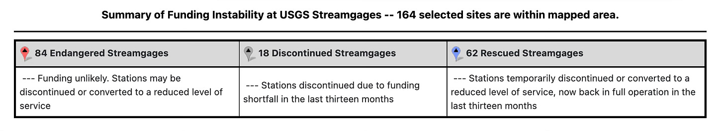 Under the Trump administration, funding for critical scientific infrastructure, such as USGS stream gauges, was slashed. These gauges are essential tools that monitor river levels and provide early warnings for floods. Without them, emergency planners and residents are flying blind in the face of rising water. According to the USGS, hundreds of gauges were shut down due to funding instability, increasing risks for downstream communities.